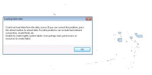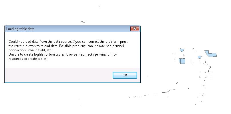 Unable to create logfile system tables. User perhaps lacks permissions or resources to create tables
