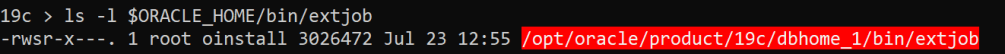 Interesting part when you apply the RU (Release Update) (implicit re-linking of the database binaries happen) which impacts extjob binary executable ownership and permission.