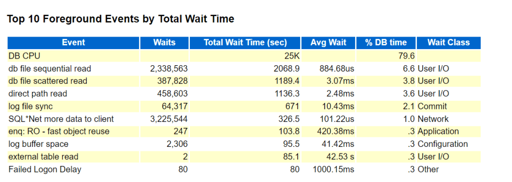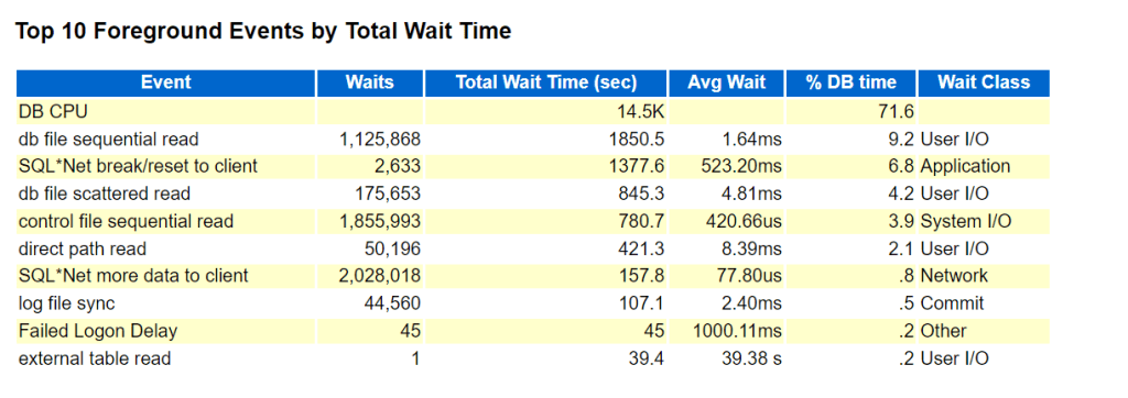 DB CPU, db file sequential read, direct path read wait events are drastically improved as shown in BEFORE/AFTER figures.